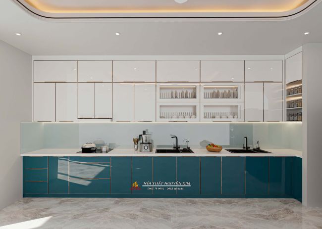 Màu trắng xanh cùng màu xanh navy cho không gian bếp sang trọng nhà cô Lý, Kinh Môn