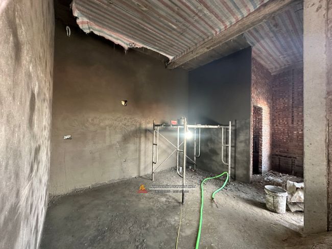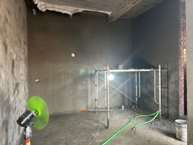 Phòng bếp đang hoàn thiện thô nhà chị Phương
