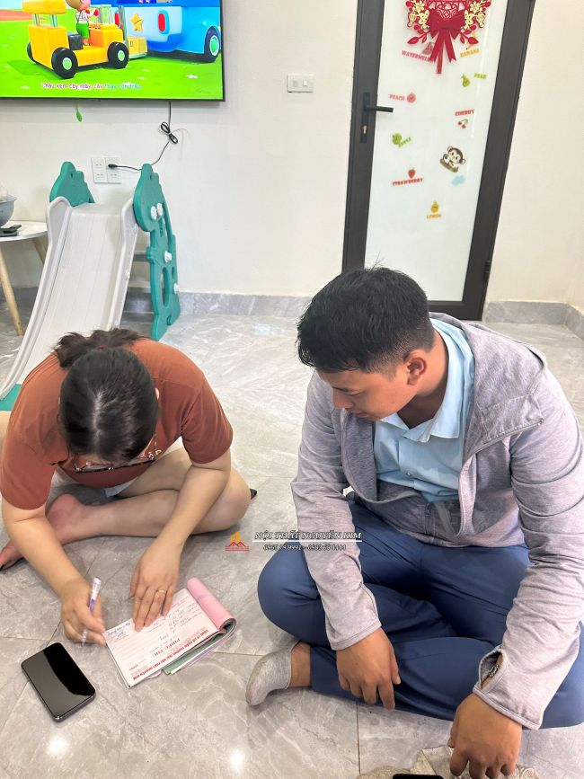 1. Quá trình khảo sát thực tế tủ bếp tại công trình nhà chị Phương