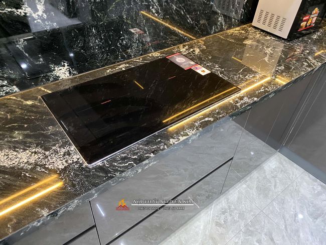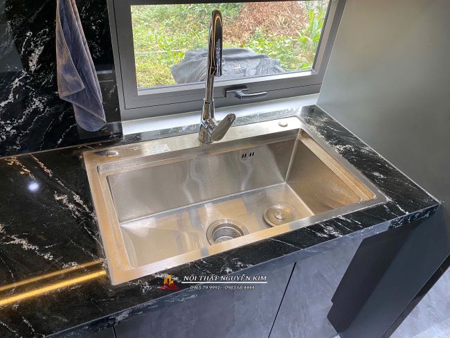 Đảo bếp, kính bếp và bàn bếp: Được ốp đá Mable nhập khẩu Ấn Độ.