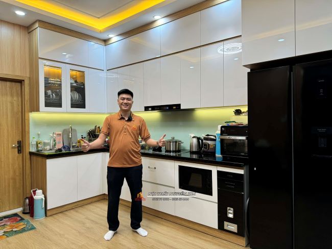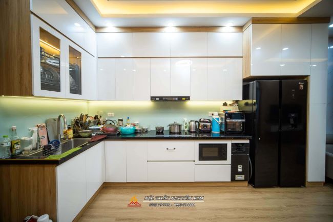 + Phòng bếp: Tủ bếp thùng inox cánh acrylic bóng gương