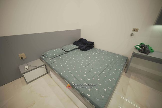 + Phòng ngủ: gỗ MDF lõi xanh chống ẩm, cánh kính cường lực cho tủ áo.