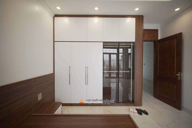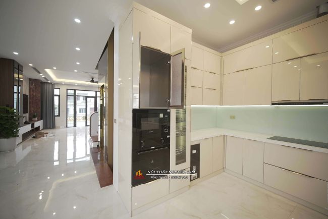- Ngôi nhà phố 05 tầng gia đình anh Hiếu lựa chọn phong cách hiện đại, sang trọng, tối giản. Chất liệu chính được sử dụng là gỗ công nghiệp MDF lõi xanh kết cùng với tủ bếp inox hệ module cánh kính cường lực - chất liệu có độ bền cao nhất hiện nay.