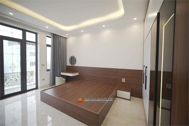 Trong thiết kế, thi công nội thất nhà phố, biệt thự, chung cư hiện đại thì gỗ công nghiệp luôn là sự lựa chọn số một. Gỗ công nghiệp mang vẻ đẹp sang trọng, đơn giản, hiện đại và chi phí vừa phải phù hợp với các gia đình trẻ hiện nay. Gia đình anh Hiếu tại Phú Xuyên, Hà Nội cũng lựa chọn 100% gỗ công nghiệp MDF lõi xanh chống ẩm cho nội thất full căn biệt thự mái Nhật của gia đình mình. Đơn vị tư vấn, thiết kế và thi công Công ty cổ phần thương mại Nội thất Nguyễn Kim.