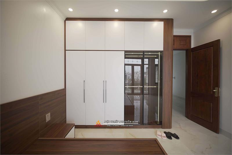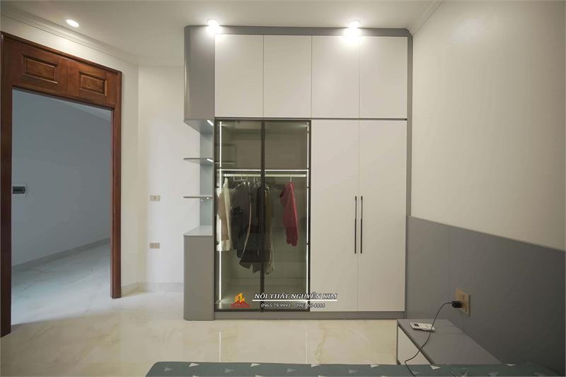 Hệ tủ áo kịch trần gỗ công nghiệp kết hợp cánh kính cường lực