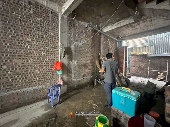 - Ngôi nhà ống 3 tầng gia đình chị Chi đang xây mới với vị trí phòng bếp tại tầng một. Căn nhà đã xây xong và đang trong quá trình hoàn thiện phần thô. Nội thất Nguyễn Kim có mặt tại công trình để tư vấn chi tiết, khảo sát, đo đạc diện tích thực tế phòng bếp có phương án thiết kế chuẩn xác nhất.