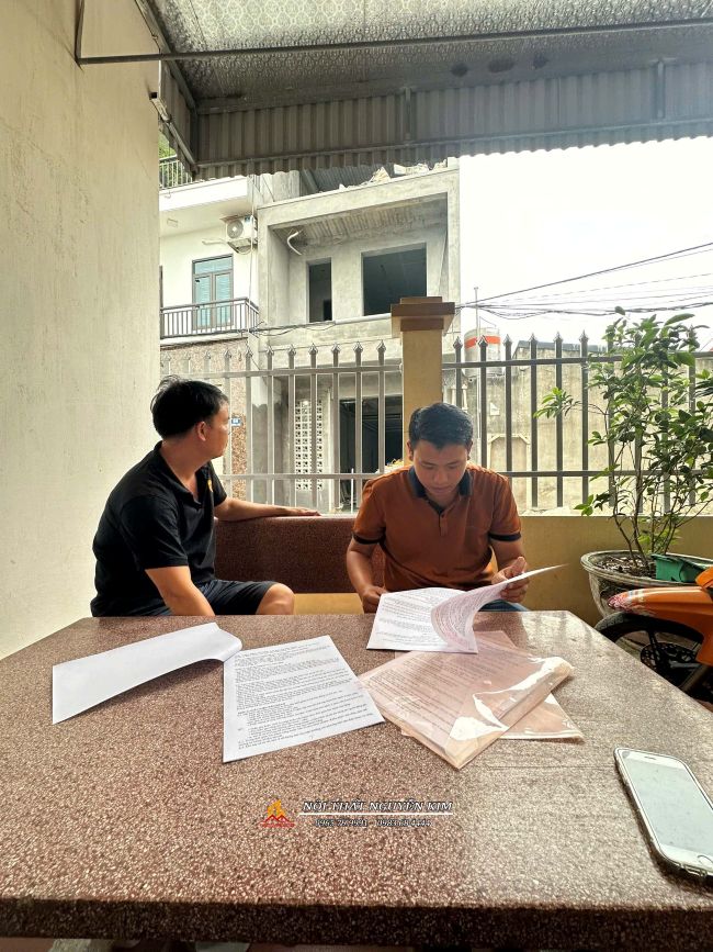 Anh Tiệp, chị Chi ký hợp đồng thi công tủ bếp gỗ gõ đỏ